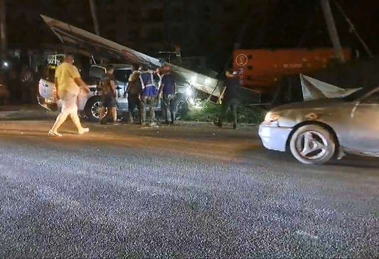 Un hombre que viajaba en un carro tipo pick-up fue atacado a balazos y producto de la agresión se estrelló contra unos rótulos.