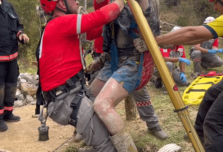 Hombre rescatado tras caer a pozo de 14 metros está grave