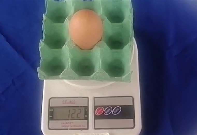 El huevo de gallina más grande que llevaron a la celebración del Día Mundial del Huevo pesó 122 gramos.
