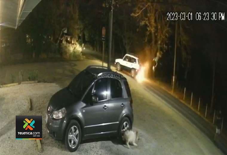 Una cámara de seguridad grabó el impactante momento cuando una motocicleta estalla tras chocar contra un carro en Guanacaste.