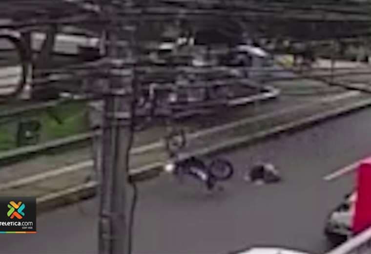 Un video muestra el accidente que sufrió un motociclista tras conducir en una sola llanta.