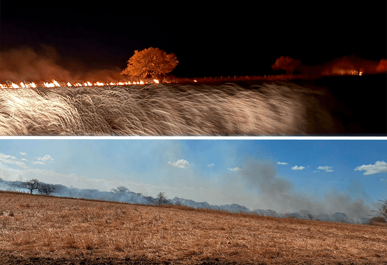 "Durante la jornada del lunes, los equipos lograron contener un sector afectado por pasto de jaragua. Sin embargo, este martes se confirmó que el incendio ingresó a la reserva biológica.