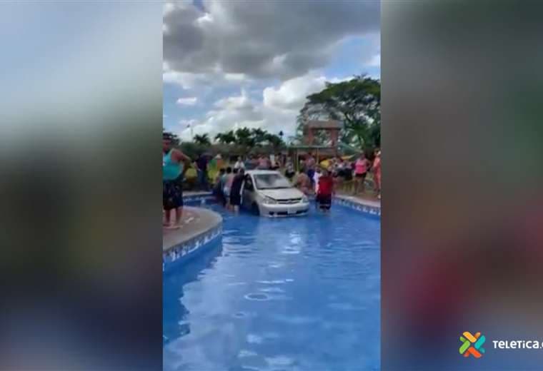 Un hecho insólito ocurrió en La Fortuna de San Carlos la tarde de este domingo cuando un vehículo se fue dentro de una piscina.