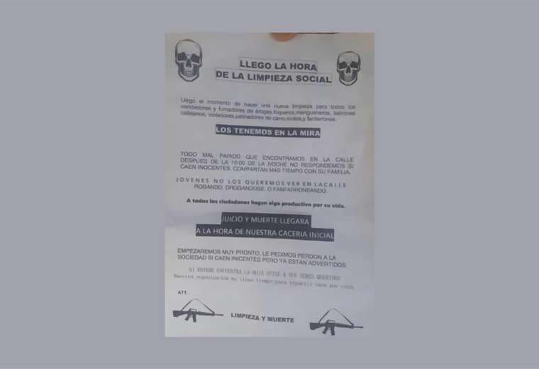 “Todo malparido que encontremos en la calle después de las 10 de la noche, no respondemos si caen inocentes, compartan más tiempo con su familia. Jóvenes no los queremos ver en la calle. Juicio y muerte llegará a la hora de nuestra cacería inicial”.