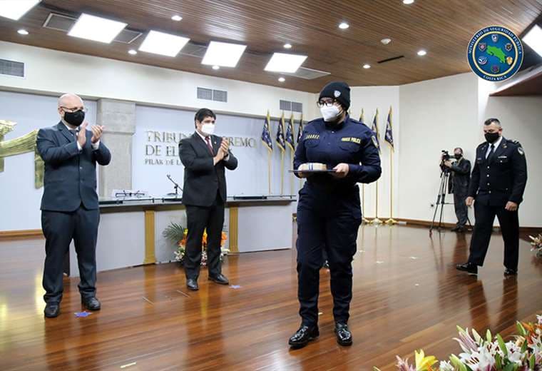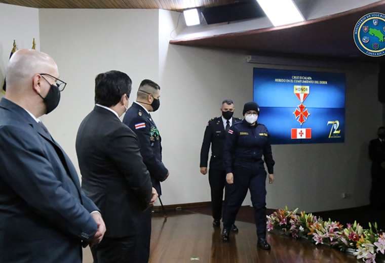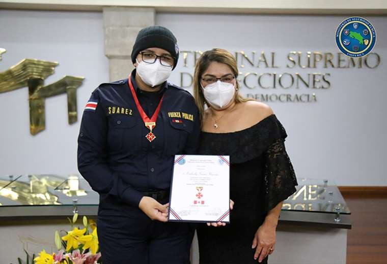 La oficial de la Fuerza Pública, Kimberly Suarez Narváez, quien sobrevivió tras recibir un disparo en la cabeza mientras atendía un caso de violencia intrafamiliar, fue condecorada con la "Cruz Escarlata".