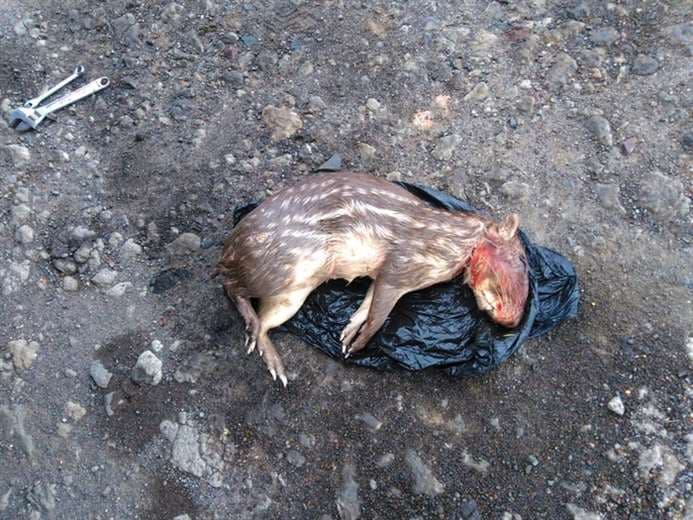Según la Brigada de Control, Seguimiento y Aprovechamiento Forestal de la ACG, cuando se detiene el vehículo se procede a solicitar la autorización del conductor para realizar una revisión más detallada del mismo y se localiza un tepezcuintle muerto en la parte de abajo, entre un cobertor protector del motor.
