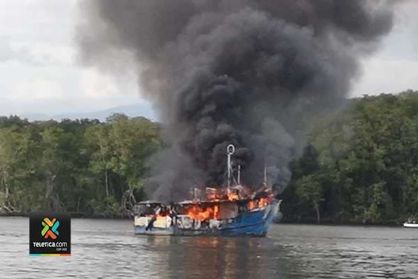 Llamas destruyen barco camaronero en Puntarenas