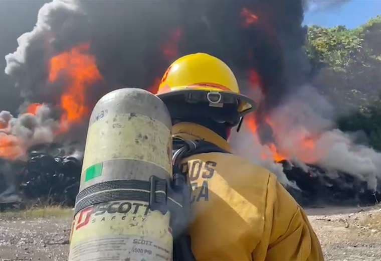 Cerca de dos horas le tomó al Cuerpo de Bomberos controlar un incendió de grandes proporciones registrado esta mañana en un deposito de llantas, en una bodega de la empresa CEMEX, ubicada en Patarrá de Desamparados.