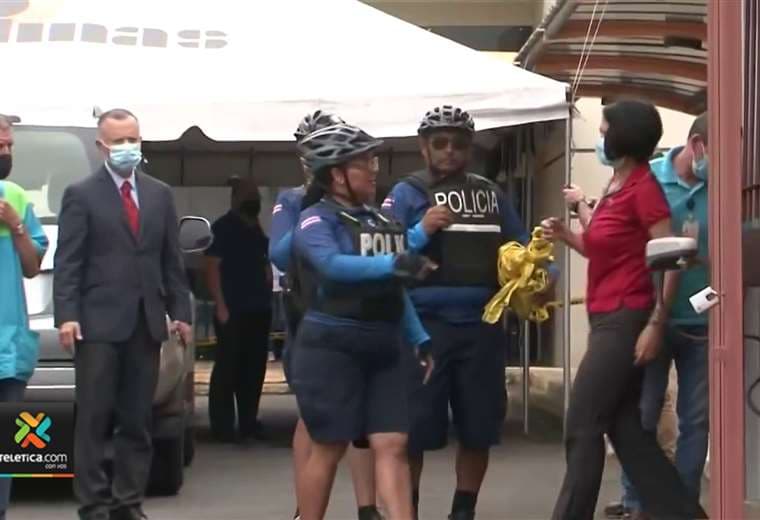 Oficiales de la Fuerza Pública custodian la escena a la espera de los agentes del Organismo de Investigación Judicial.