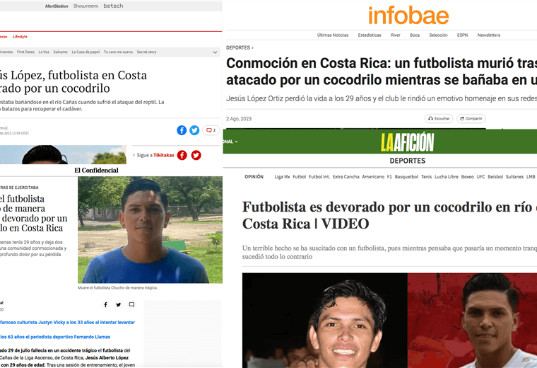 Medios internacionales hicieron eco, este jueves, de la muerte del joven futbolista atacado por un cocodrilo en un río en Guanacaste.