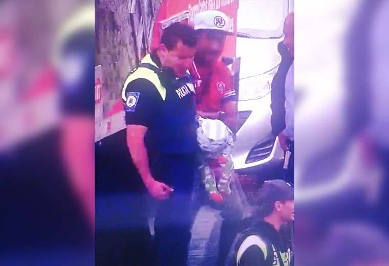 “Una unidad llegó al sitio y verificó que mantenían un cartel donde pedían dinero a los conductores y en sus brazos tenían un muñeco que simulaba un bebé. La pareja se identifica y se les solicita retirarse del lugar, se retira el muñeco también”, indicó la (PMSJ).