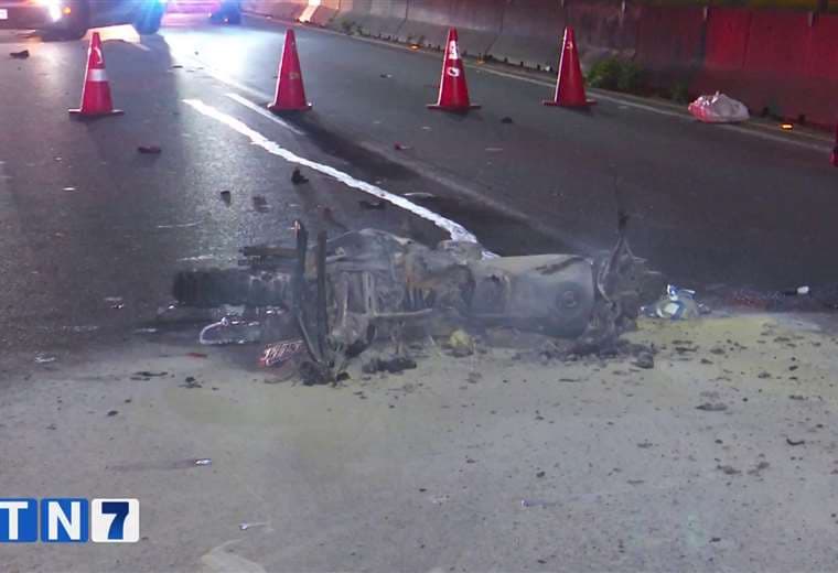 Una mujer sufrió quemaduras en el 18% de su cuerpo tras el choque de una motocicleta con una buseta en la Ruta 27, cerca del centro comercial Multiplaza, en Escazú.