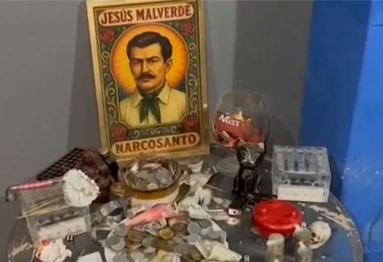 Uno de los hallazgos más llamativos se registró en la estructura principal, situada en el dique La Mora. En el salón, los agentes encontraron un narcoaltar dedicado a Jesús Malverde, figura asociada al narcotráfico en México (ver video adjunto). En el sitio había ofrendas como dinero y municiones de fusiles de asalto, elementos que, según las autoridades, reflejan prácticas ligadas a organizaciones criminales.