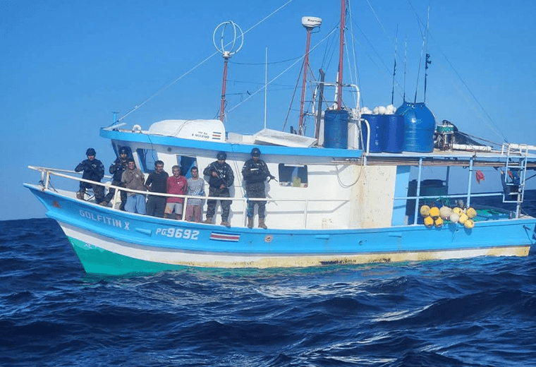 Esta vez, interceptó dos barcos pesqueros costarricenses a 300 millas náuticas (556 kilómetros) al suroeste de la Bocana El Cordoncillo, en el Estero de Jaltepeque.