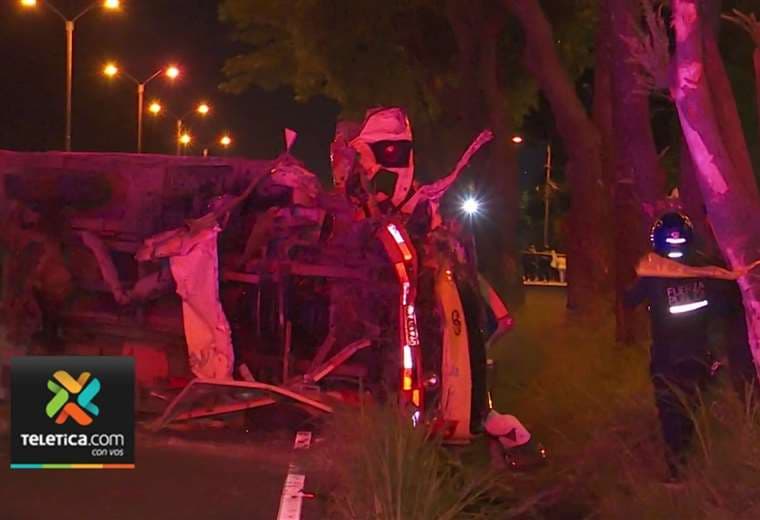"Desgraciadamente iban cinco ocupantes. Uno de ellos se aborda dentro del vehículo sin signos vitales. Se confirma a nivel del electrocardiograma, y por las lesiones que presenta, no se realizan maniobras de soporte avanzado de vida. Los otros cuatro ocupantes estaban afuera del vehículo. Dos de ellos en condición grave y dos en condición intermedia", explicó el socorrista de la Cruz Roja Costarricense (CRC), Manuel Miranda.