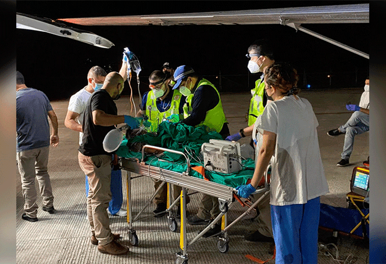 En primera instancia, el paciente fue llevado al Hospital de San Vito, pero minutos después fue trasladado vía aérea hasta la capital, en coordinación con el equipo SAAT.