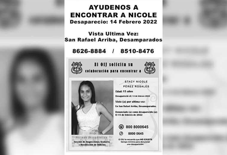 Si usted tiene información que pueda ayudar a ubicarla, puede comunicarse con los números 8626-8884 y 8510-8476 o la línea confidencial del OIJ, 800-8000-645, también disponible en WhatsApp con el número 8800-0645.