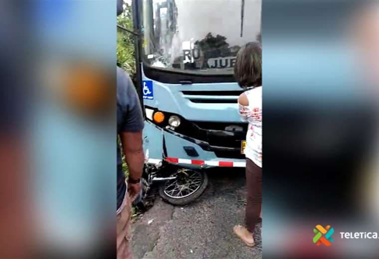 Como se aprecia en el video adjunto, la motocicleta quedó debajo de las llantas delanteras de la unidad de servicio público.
