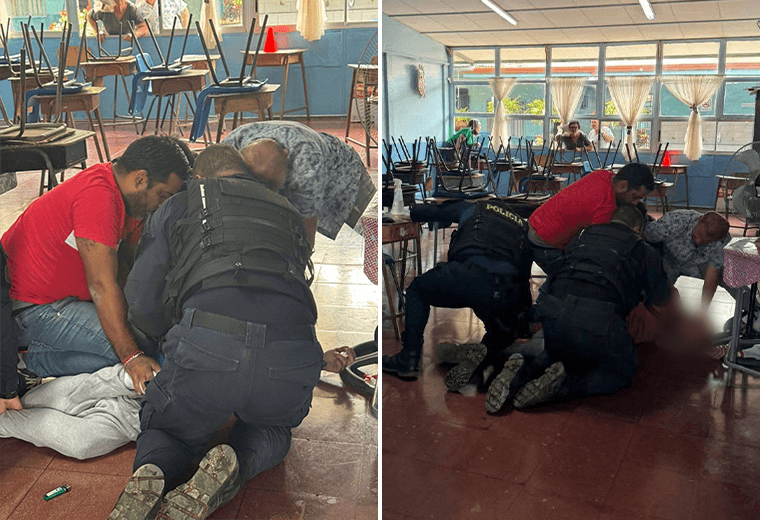 Un hombre violentó la seguridad e ingresó corriendo y gritando que lo iban a matar en la Escuela Rescate de Ujarrás, este miércoles. El sujeto se encerró en un aula mientras una maestra atendía a un grupo de niños, creando minutos de tensión y pánico entre estudiantes y personal docente.