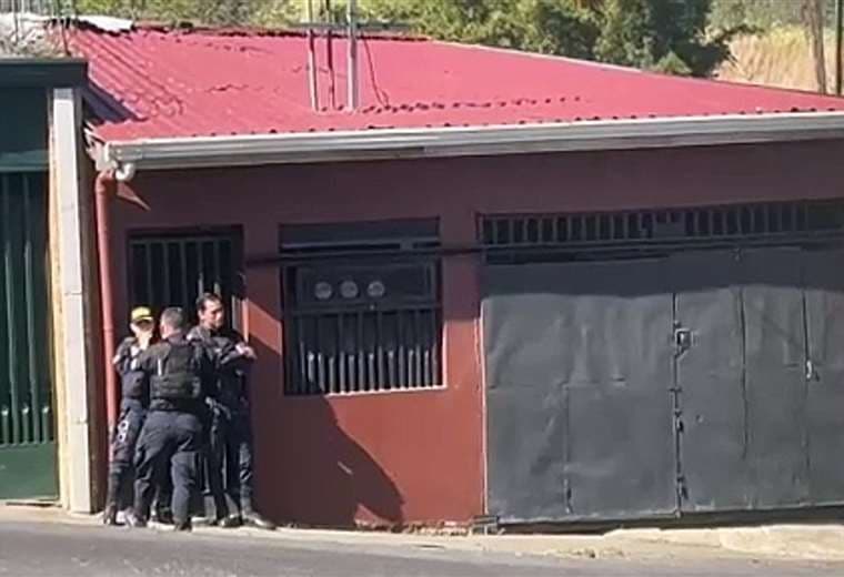 Oficiales de la Fuerza Pública custodian la escena a la espera de los agentes del Organismo de Investigación Judicial (OIJ) para el levantamiento de los cuerpos y pesquisas correspondientes.