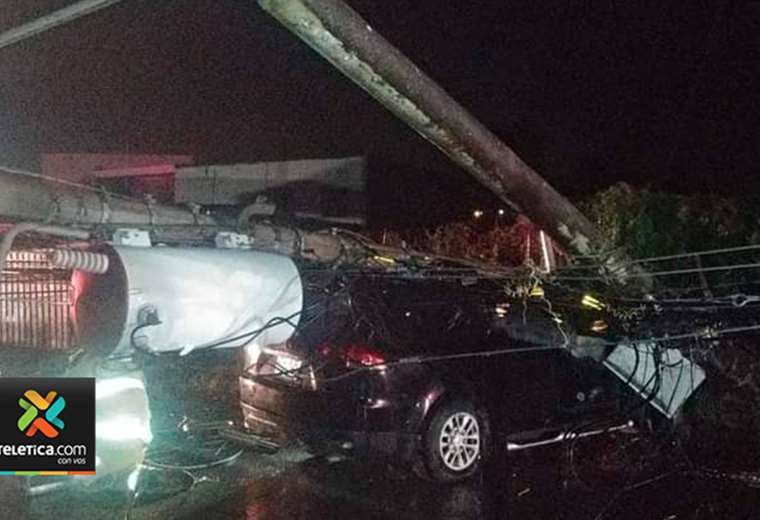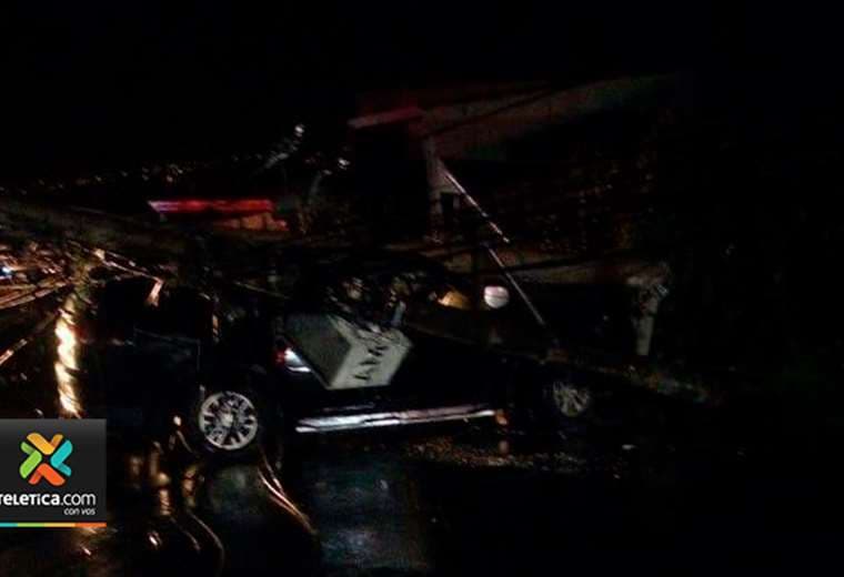 Producto del impacto, el poste se quebró y cayó sobre el vehículo 4x4, esto provocó que se fuera la electricidad en varias zonas cercanas.