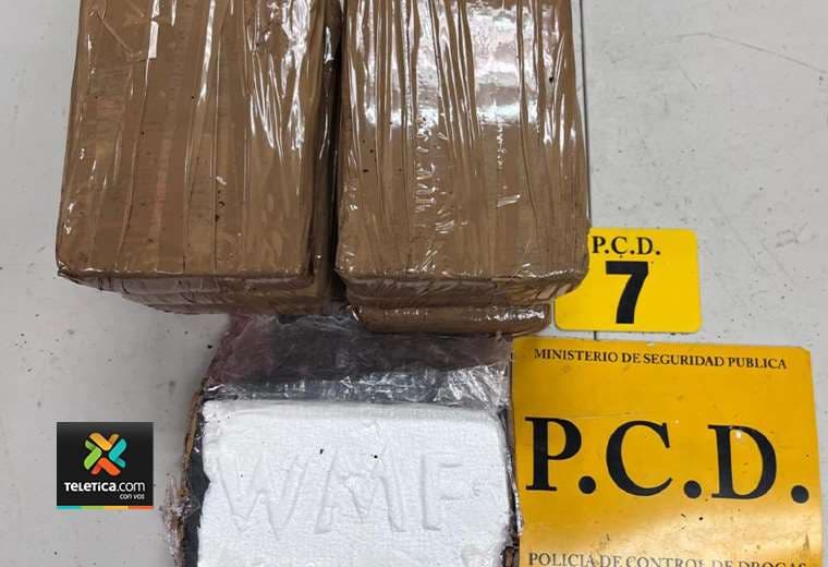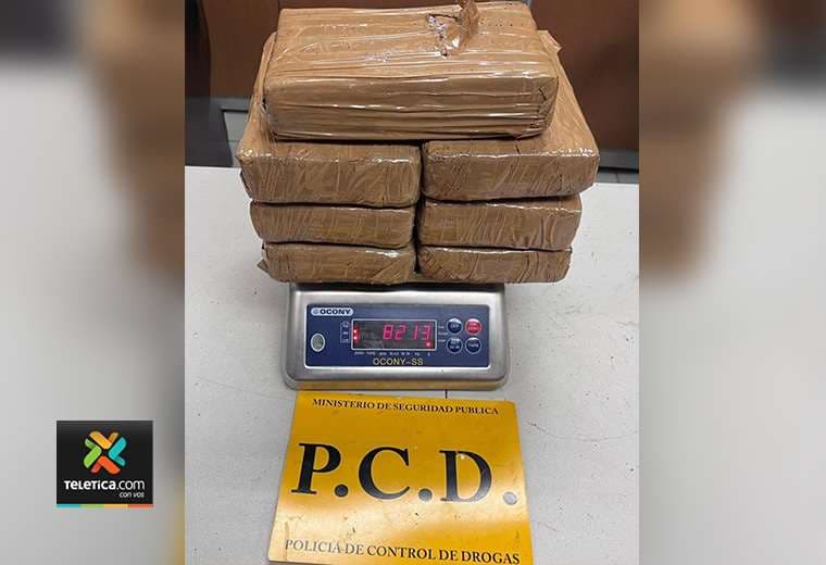 La PCD determinó que se trataba de un total de ocho kilos con 213 gramos de aparente cocaína, droga que resultó decomisada, al igual que 1.000 euros y también colones.