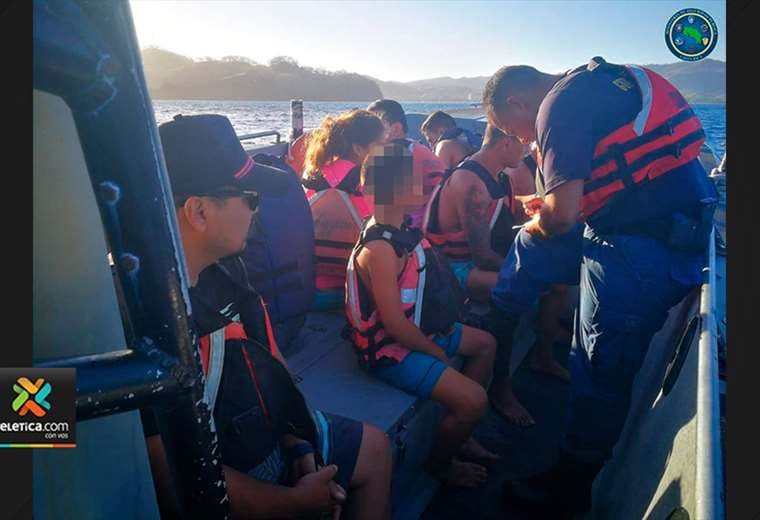Una vez hecha la alerta, los oficiales de Guardacostas se movilizaron y ubicaron a las personas afectadas. Se trata de dos mujeres de 26 y 25 años, así como siete hombres, entre ellos un menor de 11 años y los demás de 27, 31, 32, 35, 35 y 42 años, todos costarricenses.