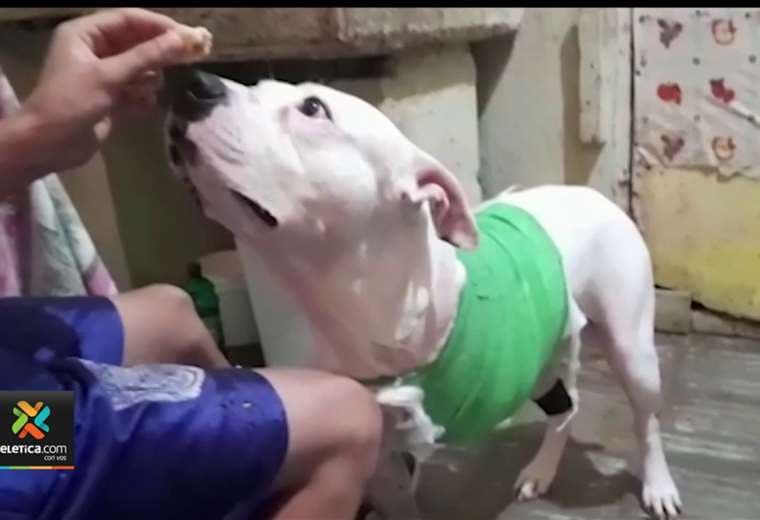 “Tommy”, el American Stafford que recibió un balazo en la pata delantera izquierda, empieza desde ahora la terapia de recuperación desde su hogar.