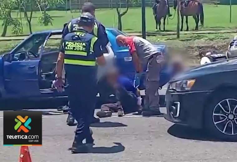 “Al abordar el vehículo se le indica al usuario que por favor lo apague, se detecta que tiene sticker en las puertas y en la tapa que dice ‘OIJ decomisado, no abrir’, por lo cual ellos levantan la alerta para atender el carro y se posicionan en forma estratégica, le piden documentos, pero dice que no tiene ni tiene licencia. Es ahí cuando arranca el vehículo y se da a la fuga”, explicó Roberto Rojas, Policía Municipal de San José (PMSJ).