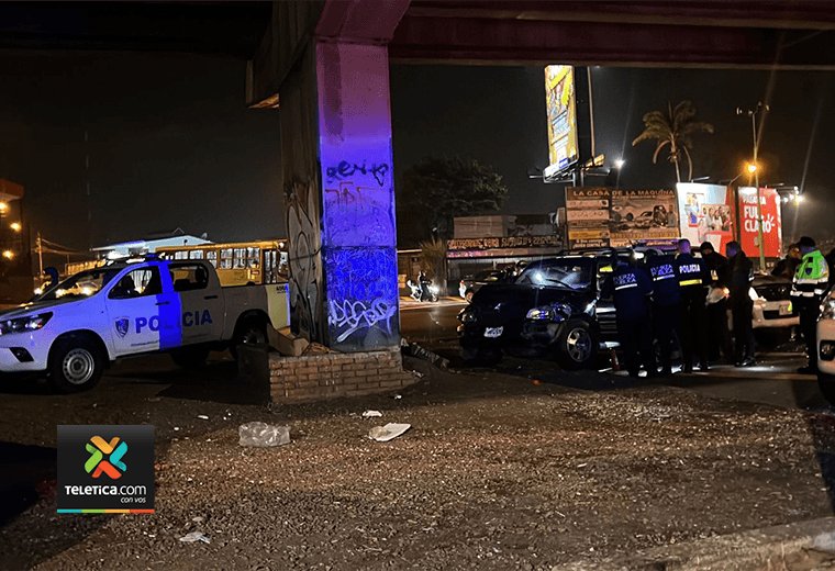 “La unidad que hacía un recorrido recibe alerta de un carro temerario, al hacer abordaje, el chofer huye a alta velocidad y en la rotonda colisiona otro carro, pierde el control e impacta contra el puente. De inmediato los oficiales proceden a detenerlo.