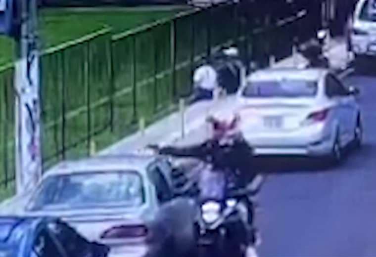 Como se aprecia en el video de las cámaras de vigilancia, dos personas llegaron en una motocicleta sin placas y una de ellas se bajó con un arma tipo pistola, con un cargador entendible de 30 tiros y disparó contra la víctima, impactando además a una menor de edad.