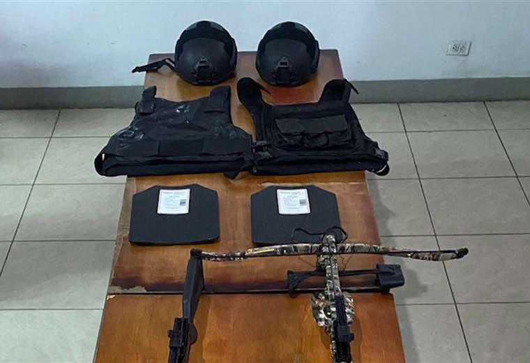 Al revisar esos bolsos se ubicaron 86 municiones de distintos calibres, un cargador tipo caracol, que es de uso prohibido en el país, dos ballestas, dos cascos balísticos, un chaleco y dos placas balísticas.