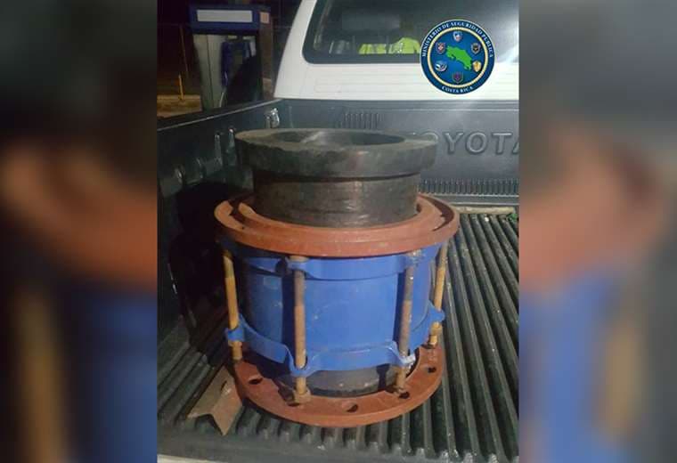 Además, decomisaron una válvula valorada en medio millón de colones, guantes y varias "lingas" para carga. Todo lo transportaban dentro de un salveque.