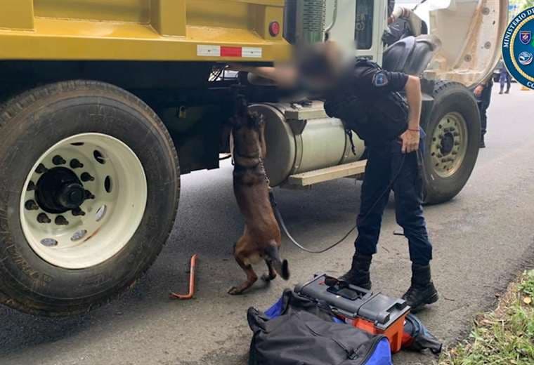 “Tras la alerta se detuvieron dos automóviles y una vagoneta. Se generó una inspección superficial de los automotores, así como en el transporte de carga pesada y por la actitud sospechosa se coordinó con la Unidad Canina para determinar si se encontraba algún tipo de droga, fue entonces que los canes dieron positivo en la prueba preliminar”, dijo Enrique Arguedas, subdirector general de la Fuerza Pública.