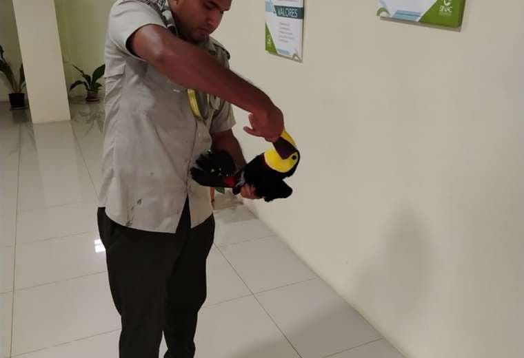 El tucán se encontraba golpeado cuando fue abordado por la Fuerza Pública.