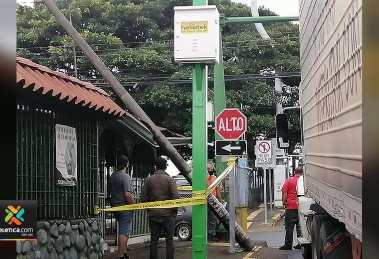 Poste del tendido eléctrico cayó sobre vivienda en Curridabat