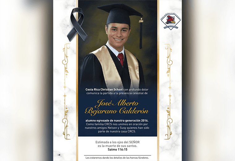 José Alberto Bejarano Calderón, de 24 años, conducía el carro que, por razones que se investigan, se estrelló contra un poste de electricidad frente al colegio Costa Rica Christian School (CRCS).