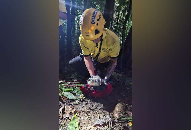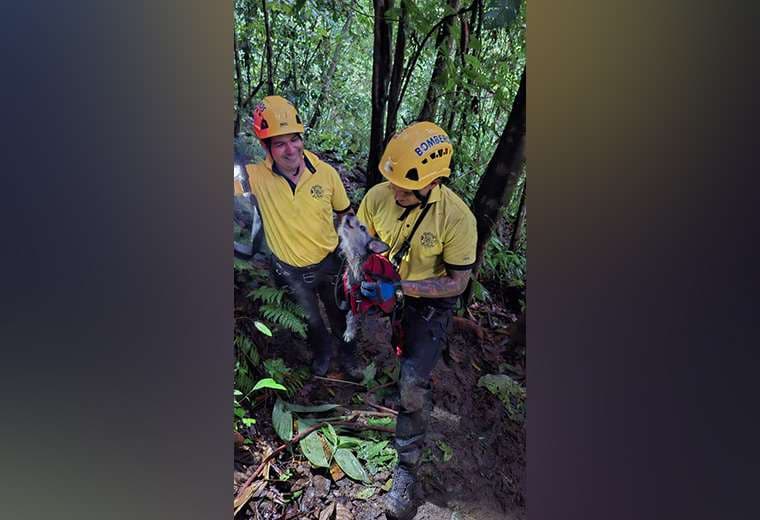 Un cachorro fue rescatado este fin de semana en las cercanías de la catarata Kamakiri, en Sabalito de Coto Brus, luego de caer aproximadamente 25 metros en un barranco de difícil acceso.