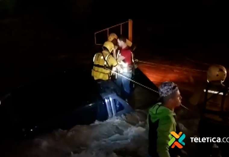 Momentos de angustia se vivieron en Parrita cuando la corriente del río desbordado arrastró dos vehículos.