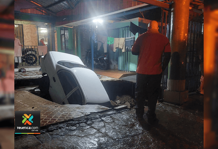 ¡Se lo tragó la tierra! Lluvias abren hueco al que cayó carro en Aserrí