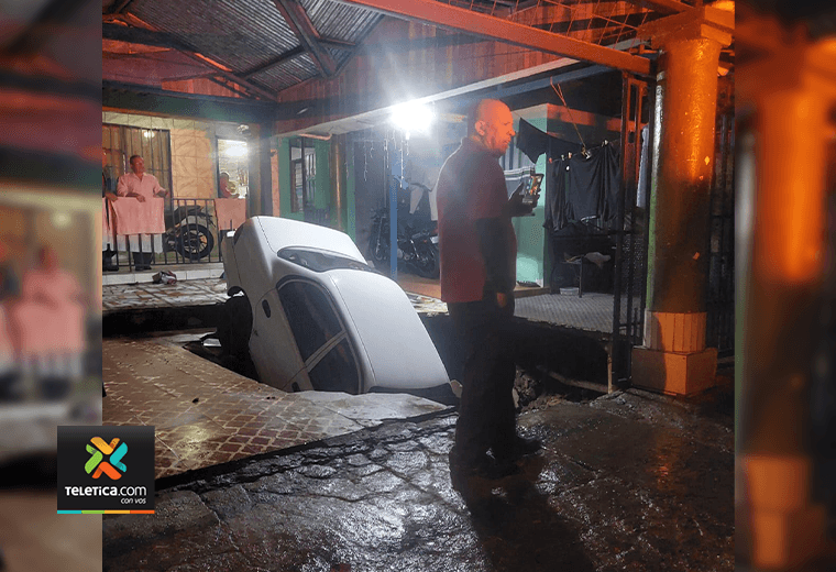 Un carro fue “tragado” por la tierra debido a las constantes lluvias de las últimas horas que falsearon un terreno dentro de una casa en Aserrí de San José.