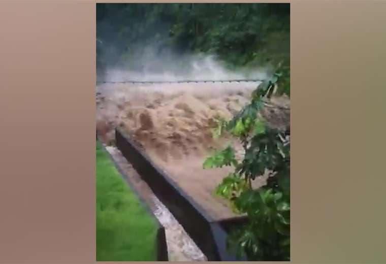 Las fuertes lluvias provocaron la crecida de una quebrada y del río Coto en Buenos Aires de Puntarenas.
