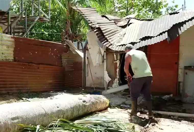Una familia integrada por un bebé de 9 meses, un niño de 3 años y sus dos padres asegura estar viva de milagro, luego de que un árbol de gran tamaño destruyera su vivienda en Esparza.