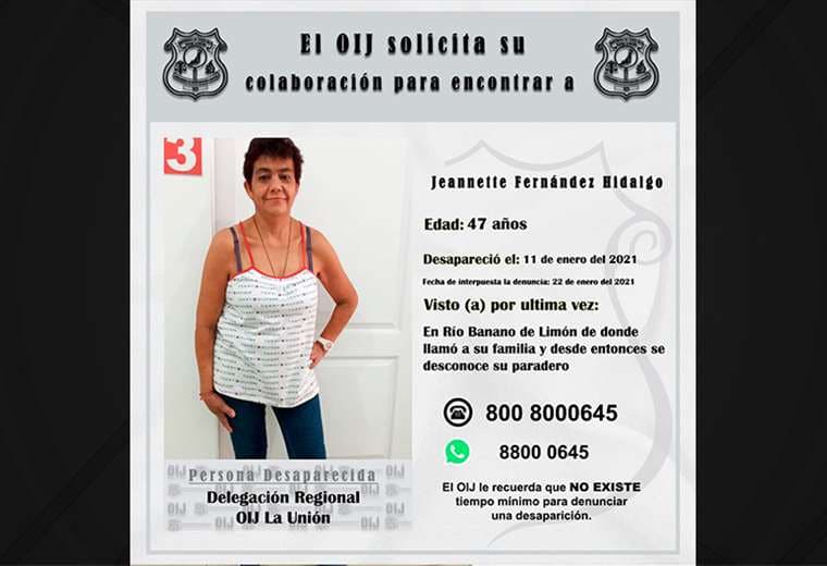 No se sabe nada de ella desde el pasado 11 de enero; pero, según el OIJ, fue hasta el viernes 22 de enero que presentaron una denuncia formal por su desaparición.