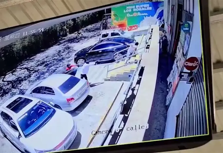 Una cámara de seguridad registró el momento en que dos hombres armados esperaron a que un cliente saliera de un supermercado para atacarlo a balazos en de Alajuela.