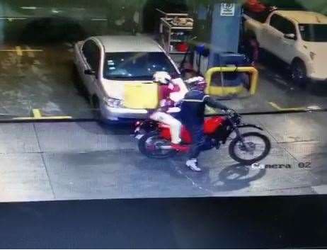 Todo quedó grabado en una cámara de seguridad del lugar. En las imágenes se observa a los sujetos con un bolso de una empresa que se dedica a la entrega de comida por medio de plataformas digitales.