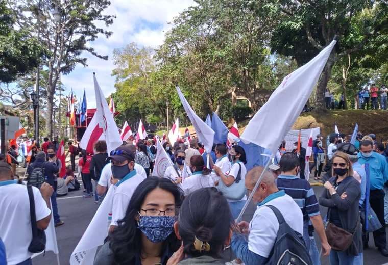 Desde las 2 p. m. de este jueves, varios sindicatos protestan frente a la Asamblea Legislativa, en San José, contra el proyecto de reforma al empleo público.