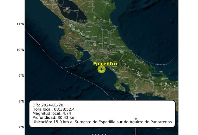 El epicentro se localizó 5 km hacia el Sureste de Manuel Antonio, Quepos, según el Observatorio Vulcanológico y Sismológico.