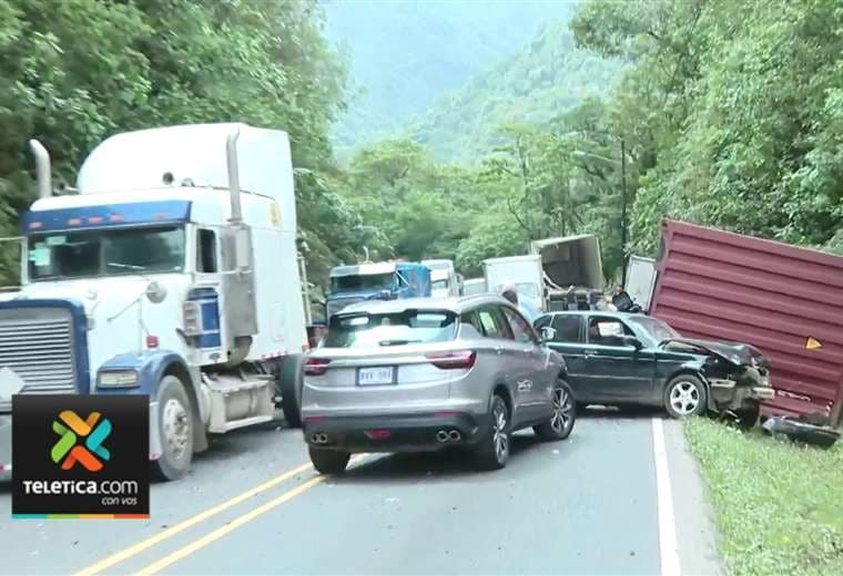 Un bebe de cuatro años fue trasladado en condición urgente y cinco personas más resultaron heridas tras el desprendimiento de un remolque de un tráiler que cayó sobre varios vehículos en el Zurquí.