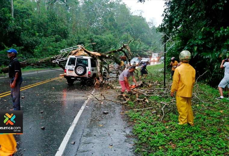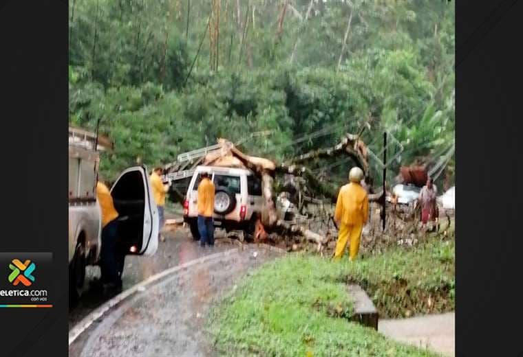 Trabajadores del Instituto Costarricense de Electricidad (ICE) se trasladaban en carro hacia una inspección cuando el tronco de un árbol les cayó encima.